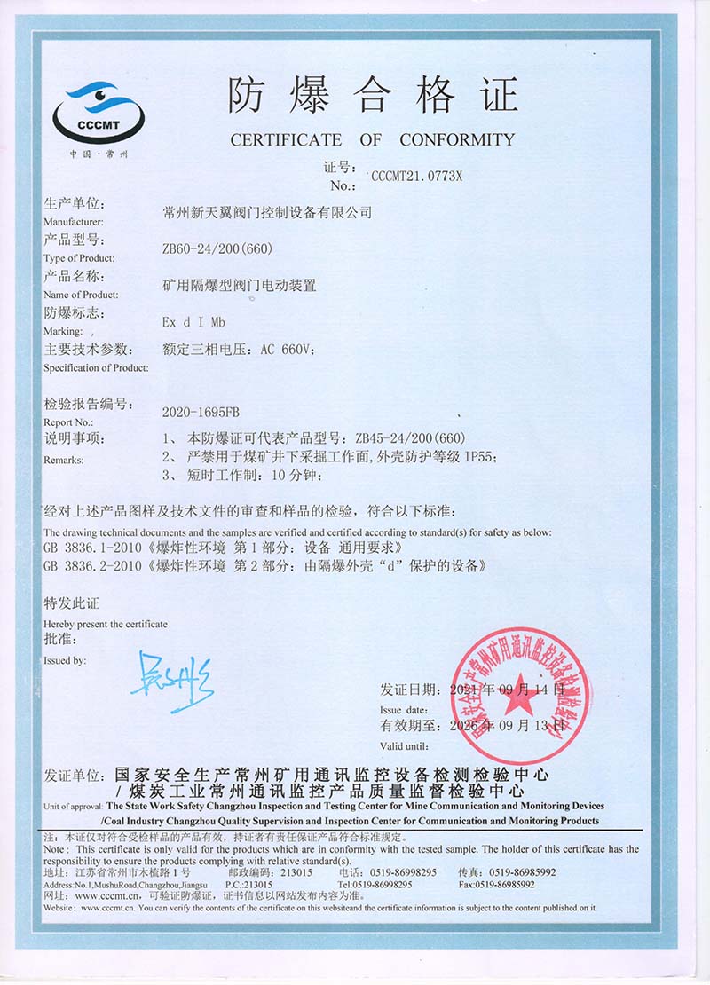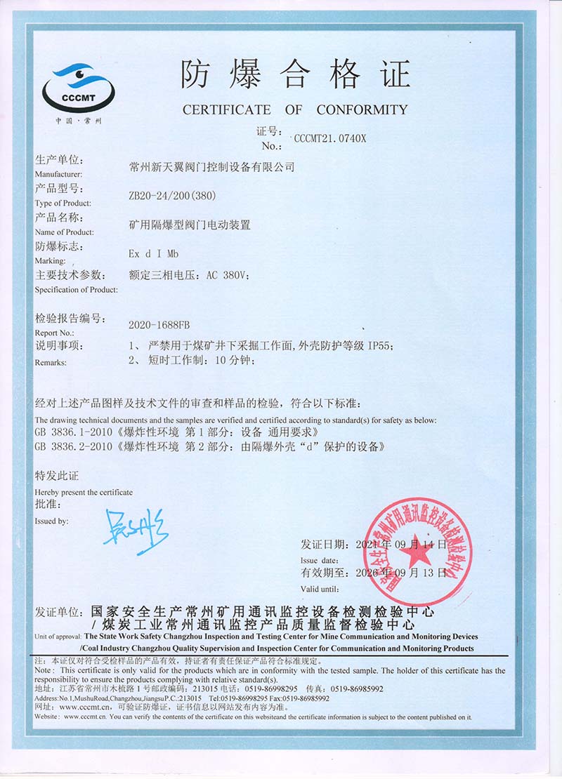 ZB20-24 200(660) 防爆合格證